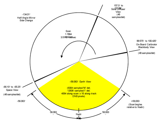 VIIRS scan section diagram illustrating the different collection regions and their angles during a single scan.