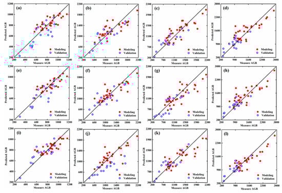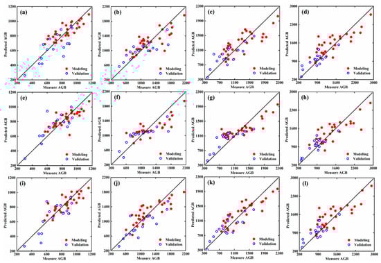 4.4. Estimation of AGB Based on Different Modeling Methods