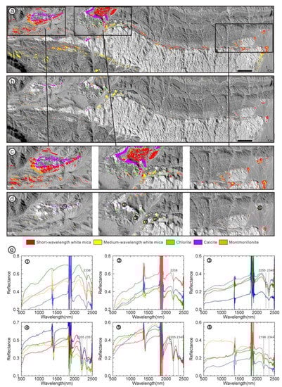 - Chung, B.; Yu, J.; Wang, L.; Kim, N.H.; Lee, B.H.; Koh, S.; Lee, S. Detection of magnesite and associated gangue minerals using hyperspectral remote sensing—A laboratory approach. Remote Sens. 2020, 12, 1325. [Google Scholar] [CrossRef]