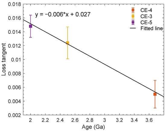 4.1. Relationship between the Loss Tangent and the Moon’s Surface Age