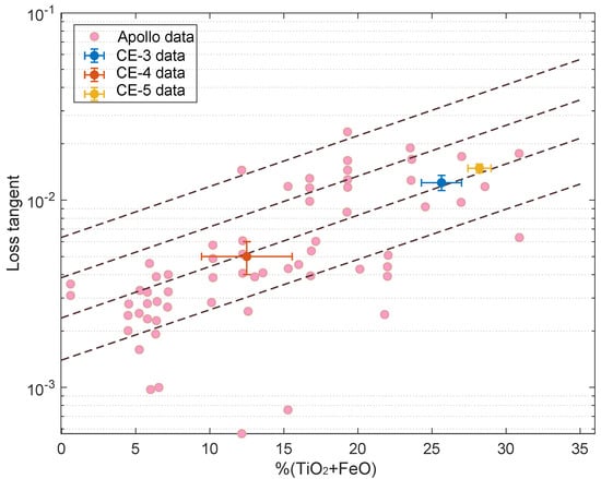 4.3. The Influence of TiO+FeO Content in the Lunar Regolith on the Loss Tangent