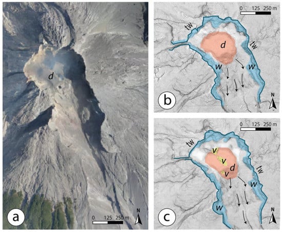 - Darmawan, H.; Walter, T.R.; Troll, V.R.; Budi-Santoso, A. Structural weakening of the Merapi dome identified by drone photogrammetry after the 2010 eruption. Nat. Hazards Earth Syst. Sci. 2018, 18, 3267–3281. [Google Scholar] [CrossRef]