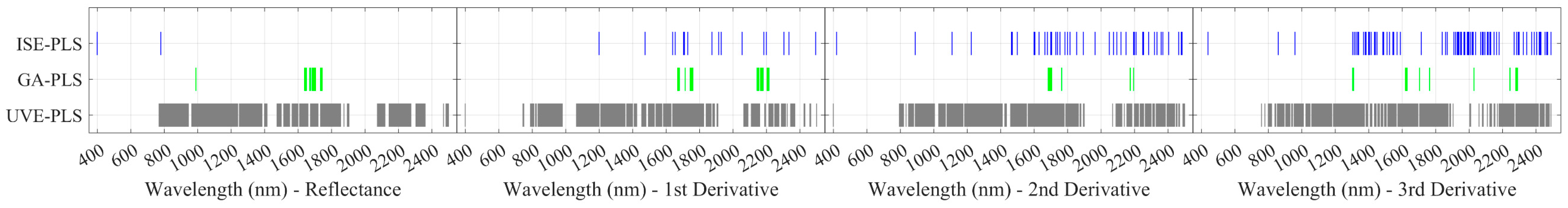 2.3. Informative Band Selections and Partial Least Squares Regression Analyses