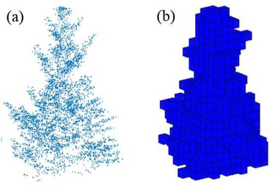 (a) The single tree point clouds (b) The schematic diagram of the voxel algorithm.