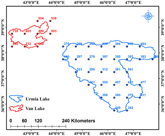 Lake Urmia (LU) is the world’s second-largest hypersaline lake, with its shores home to a population of approximately 6 million people. Numerous studies have been conducted to address issues related to changes in Lake Urmia, using either statistical methods or satellite image processing. Jalili et al. [15], for example, examined the lake’s water level change in relation to climate indicators and observed a high association before 1995, when the basin was heavily dammed. They gradually raised the water level of LU to that of Turkey’s Lake Van (LV), discovering a negative trend in LU and a positive trend in LV. Shadkam et al. [16] used a variable infiltration model to explore the impact of climate change and water resource development on inflow into LU. This study found a 40% decrease in inflow during a few dry years. AghaKouchak et al. [17] also looked at the change in water level in LU and discovered that it had dropped by 88% in the past two decades. As a result, according to these reports, the lake’s water level and surface area have dropped substantially over the past two decades, as has been widely recorded [7,17,18].