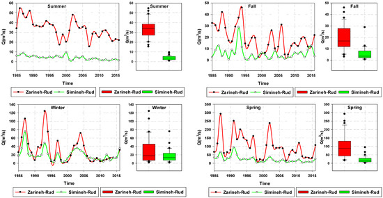 Seasonal hydrographs of the Zarineh-Roud and Simineh-Roud in the LU basin during 1985–2015.