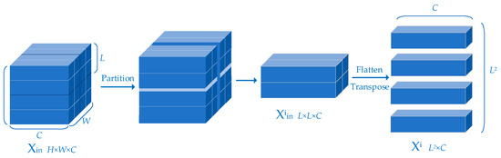 where presents the reshaping operation and presents concatenating, denotes learnable parameters, and denotes the embedding position information. At last, the output feature maps of all image patches are combined to obtain the overall feature map of the entire image .