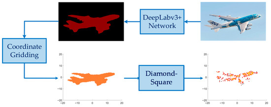 Existing data-driven DL methods directly use the network trained by simulated point targets to image the measured block targets. However, this approach only preserves the pixels with large magnitudes as the individual scattering points, ignoring the weak scatters around and losing a lot of image details. In this paper, we propose a pseudo-measured data generation method to generate a variety of block targets with similar scattering distributions of the real measured data. Due to our focus on imaging for aircraft targets, the generation of various pseudo-measured aircraft block targets is taken as an example, as shown in Figure 7.
