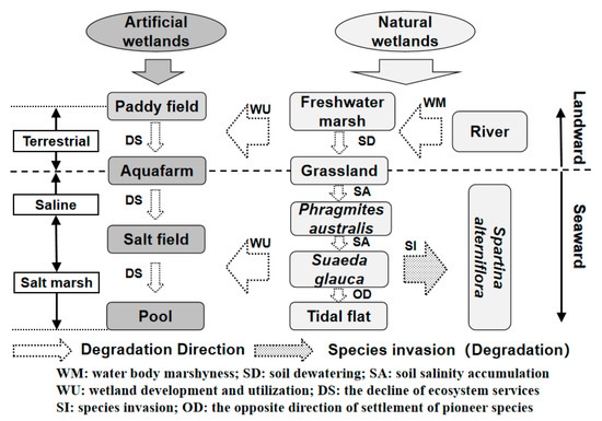 - Zhou, Y.X.; Tian, B.; Huang, Y.; Wu, W.T.; Qi, X.Y.; Shu, M.Y. Degradation of coastal wetland ecosystem in China: Driver, Impacts, and Strategies. Bull. Chin. Acad. Sci. 2016, 31, 1157–1166. [Google Scholar]