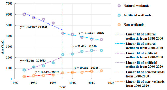 - Hu, T.G.; Liu, J.h.; Zheng, G.; Zhang, D.R.; Huang, K.N. Evaluation of historical and future wetland degradation using remote sensing imagery and land use modeling. Land Degrad. Dev. 2020, 31, 65–80. [Google Scholar] [CrossRef]