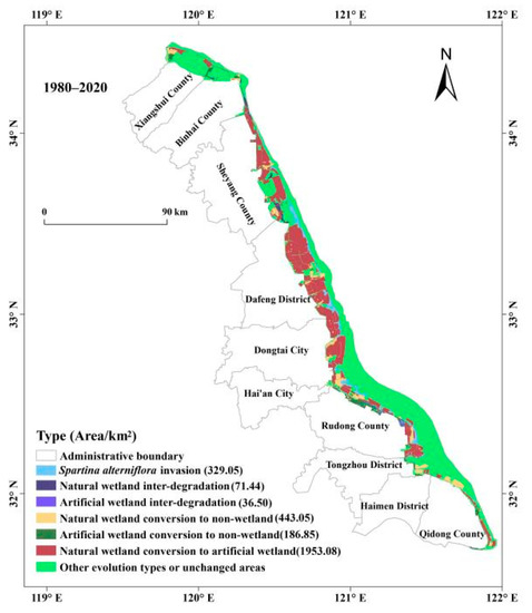 - Cui, L.L.; Li, G.S.; Chen, Y.H.; Li, L.J. Response of Landscape Evolution to Human Disturbances in the Coastal Wetlands in Northern Jiangsu Province, China. Remote Sens. 2021, 13, 2030. [Google Scholar] [CrossRef]