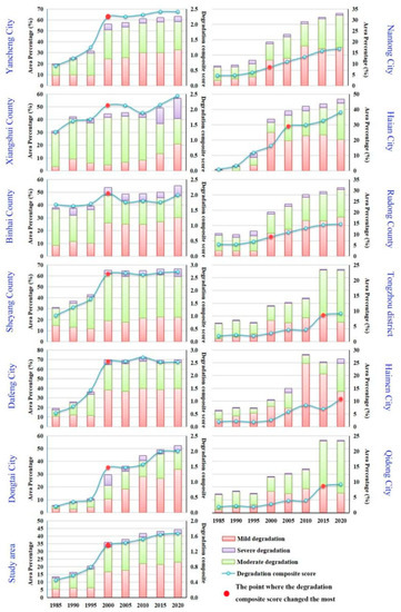 3.2. Spatial Distribution Characteristics of Degraded Areas
