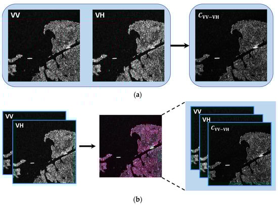 (3) CVV-VH feature: Considering the dual-polarization characteristic in the Sentinel-1 satellite product, a polarization covariance matrix C2 is obtained by the following formula [33]: