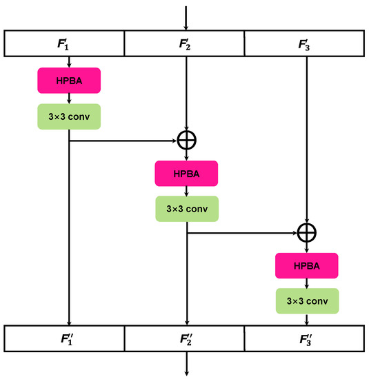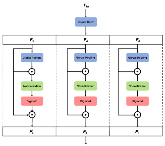 Figure 4 shows the detailed structure of the GFF. Note that, after the GFE, we obtain three feature map groups, denoted by , where i β {1, 2, 3}. Each feature group has the same height, width size and channel amount compared with the original input feature map Fin β RWΓHΓC in Section 2.2. In addition, in order to balance each polarization featureβs contribution, a HPCA is inserted in the GFF, which will be described in detail in Section 2.4.
