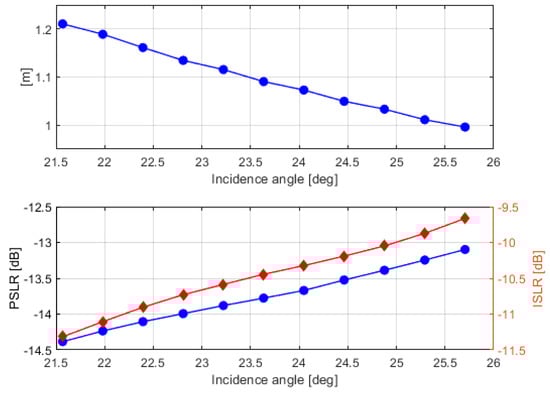 Top: ground range resolution; bottom, left-axis: PSLR; right-axis: ISLR.