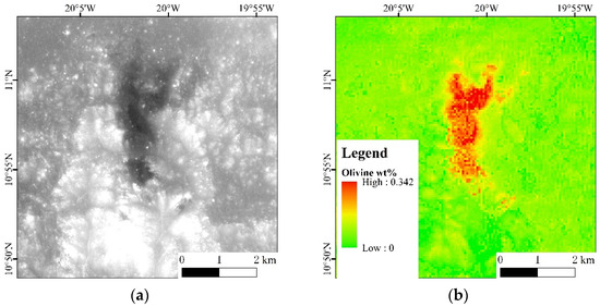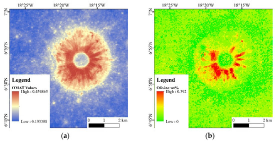 Mineral maps of the OMAT and olivine of Copernicus H. (a) OMAT in Copernicus H; (b) Olivine values on Copernicus H.