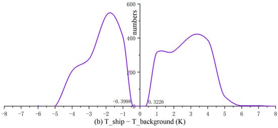 Statistical results of (a) aspect ratio of ship target bounding box and (b) the brightness temperature on the pupil (T/K) between the ships and sea surface in 8~10.5 µm in the TISD.