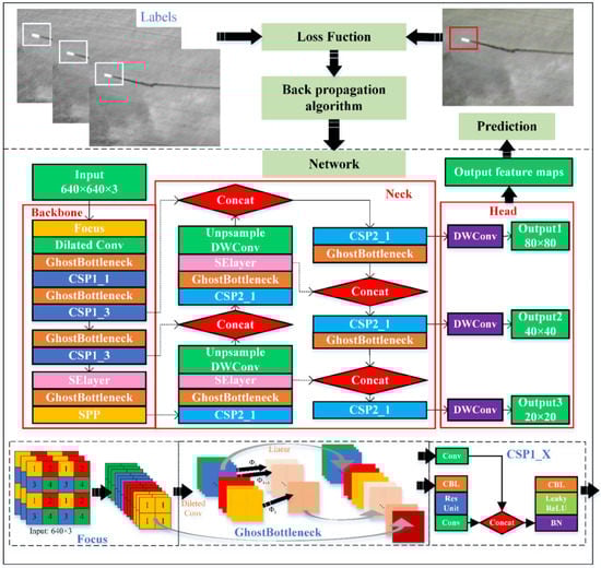 The architecture of proposed all-day ship detection methods (The details of these modules including Focus, Ghost Bottleneck, and CSP1_X are shown at the bottom).