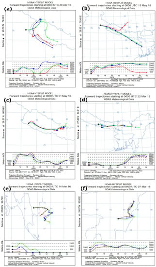 - Rolph, G.; Stein, A.; Stunder, B. Real-Time Environmental Applications and Display SYstem: READY. Environ. Model. Softw. 2017, 95, 210–228. [Google Scholar] [CrossRef]