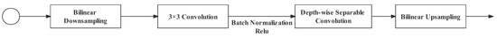 - 3 × 3 standard convolution: The 3 × 3 standard convolution with a stride of 1 at the beginning plays the role of channel expansion. The channels can be expanded with arbitrary appropriate ratios, but the experimental results in the BiSeNetv2 paper proved that the ratio of 6 has the best performance. Therefore, we also retained the ratio of 6 in our design;
