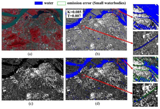 - Liu, X.Y.; Liu, L.; Shao, Y.; Zhao, Q.H.; Zhang, Q.J.; Lou, L.J. Water Detection in Urban Areas from GF-3. Sensors 2018, 18, 1299. [Google Scholar] [CrossRef]