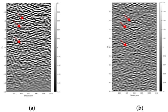 Reconstruction result of cross-correlation between passive seismic records with short pe-riods and passive seismic records with long periods. (a) The reconstructed result of passive seismic records with short periods; (b) the reconstructed result of passive seismic records with long periods.