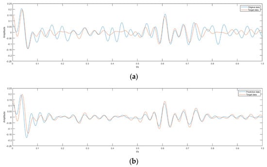 The deep learning framework used in our experiment is tensorflow-gpu, version 1.8. The number of epochs is set to 500, the activation function is tanh, and the dropout is given as 0.6 to prevent overfitting on the one hand and to give more expectation to the potential of the neural network on the other. The optimizers use adam. Among them, the main factors that affect the training time are the size of the dataset and the number of epochs. The training took a total of 8 h, and the processing of the test data took less than 1 min. The result of the test data processed by the neural network and the difference between it and the reconstruction result of the corresponding passive seismic records with long periods are shown in Figure 7.
