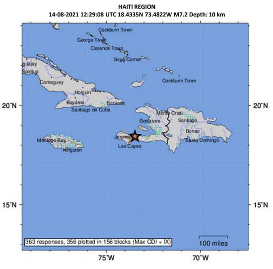 D’Angelo, G.; Piersanti, M.; Battiston, R.; Bertello, I.; Carbone, V.; Cicone, A.; Diego, P.; Papini, E.; Parmentier, A.; Picozza, P.; et al. Haiti Earthquake (Mw 7.2): Magnetospheric–Ionospheric–Lithospheric Coupling during and after the Main Shock on 14 August 2021. Remote Sens. 2022, 14, 5340. https://doi.org/10.3390/rs14215340