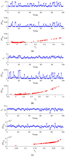 In matrix theory, the Manhattan distance as a standard can be used to measure the difference of FMs. This study used the Mahalanobis norm as the truth value to verify the correctness of the scalar function YF. The experiment in Section 4.2 found that there was a linear relationship between YF and , and there was a high linear correlation in three groups of tests. The Mahalanobis norm, as the truth value, can represent the difference of FMs, the scalar function YF derived in Equation (26) can also be used to measure the FM error.