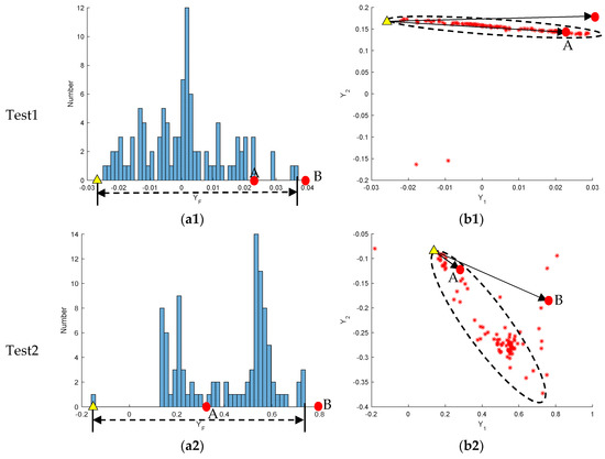 A large number of experiments found that the cumulative contribution rate of the first two eigenvalues for FM covariance matrix, which is calculated by Equation (23), accounted for > 85%. Therefore, the first two principal components Y1 and Y2 are used to form the vector Y = (Y1, Y2) and to construct the scalar function YF. Therefore, the Y and YF could be calculated mainly by Equation (26) in the following experiments.