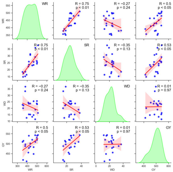 Based on the TRHR’s 2000–2019 terrestrial ecosystem water retention, soil retention, windbreak and sand fixation, and forage supply services data, the Pearson correlation coefficient was used to measure the correlation between the two ecosystem services [11]. The positive and negative values and the absolute value of the values can be used to determine the trade-off and synergy between the two ecosystem services. At the same time, the significance of the trade-off synergy between ecosystem services was judged by the t test. The specific formula is as follows: