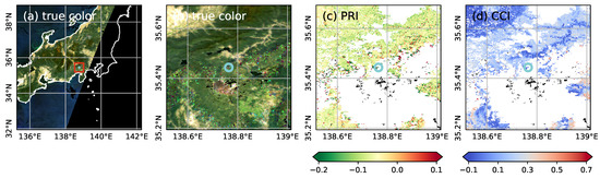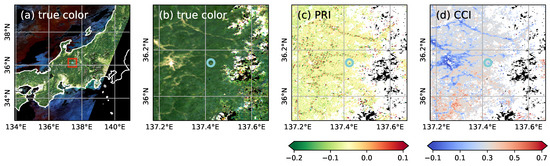 Nevertheless, to the author’s best knowledge, no study has conducted even the accuracy assessments of the PRI and the CCI yet in forests. Therefore, the purpose of this study is to conduct the accuracy assessments of the PRI and the CCI derived from GCOM-C/SGLI by comparing them with in situ observation data of forests.