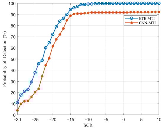 PD versus SCR curves of the proposed ETE-MTI and the CNN-MTI method [31].