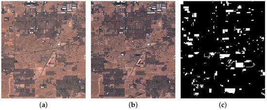 Lasvegas of OSCD. (a) Pre-change. (b) Post-change. (c) ground truth map.