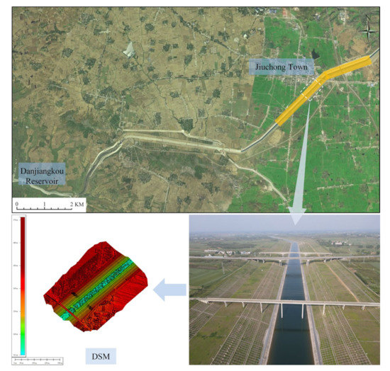 - Liu, W.; Gong, T.; Hu, Q.; Gong, E.; Wang, G.; Kou, Y. 3D reconstruction of deep excavation and high fill channel of South-to-North Water Diversion Project based on UAV oblique photography. J. North China Univ. Water Resour. Electr. Power (Nat. Sci. Ed.) 2022, 43, 51–58. [Google Scholar]