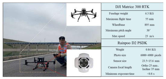 UAV survey site and main equipment specifications.