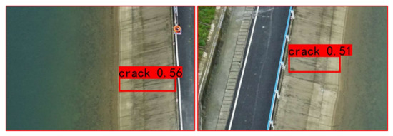 - Making a dataset with cropped and preprocessed image data can improve the overall performance of the crack-detection model. The UAV flight height is set to 30 m due to the terrain characteristics of the survey area. The crack is small compared to the whole image, and the YOLO v5x network is less effective in recognizing small targets, so the features of small-sized cracks will be lost during the training process. After the data are preprocessed by cropping, the cracks are relatively larger than the cropped image, so the YOLO v5x network will be more comprehensive in learning the crack features, making the trained model more robust.
