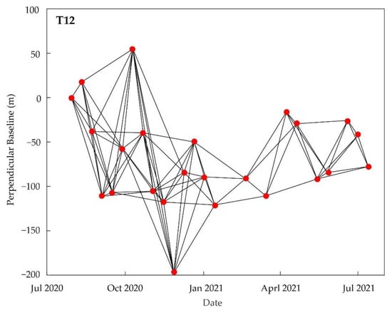 Spatial–temporal baselines for Sentinel-1 interferograms from ascending track 12.