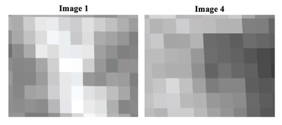 When possible, it is advised to begin the georeferencing process on the strip with the largest number of potential quality ground control points, particularly where the largest number of persistent structures or roadways exist. Once this strip is georeferenced it can be used as reference for other overlapping, unreferenced strips. While not a typical approach for georeferencing in remote sensing, Hamandawana et al. proposed this methodology for Corona imagery because of the unique challenges associated with detecting a sufficient number of quality ground control points in many Corona scenes []. They recommend georeferencing a “primary” strip and then, if necessary due to a lack of quality ground control points in the overlapping strip, match features in the referenced Corona strip to features in the unreferenced strip within the area that they overlap []. For this study area, the most practical primary strip to build from was image four (the southernmost image) because there are significantly more persistent features that could serve as ground control points, including the present-day city of Naiman. Subsequent images were georeferenced using the approach from Hamandawana et al., moving from image four to image one in reverse chronological order and making use of the overlapping area with the previously referenced image when necessary [].