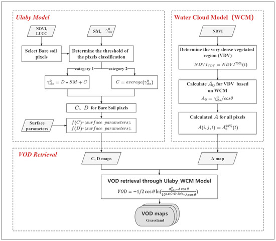 Flowchart of VOD retrieval based on a combination of the WCM and Ulaby models.