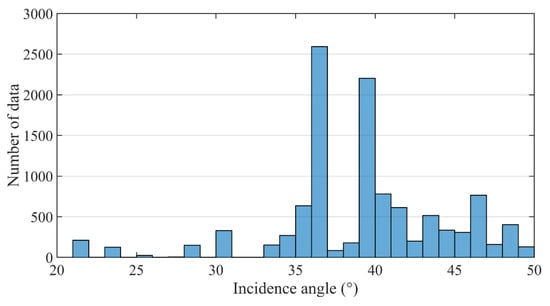 Histogram of radar incidence angles for Gaofen-3 wave mode data used in this study.