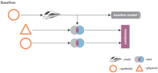 Starting with a brief summary of existing approaches in the background chapter Section 2, we introduce our priming methodology, described in three steps in Section 3. After a short overview, this section introduces the challenge and the concept of semantic unification (see Section 3.1). This section directly ties into Section 3.2, which integrates the unification concept and describes the core of the priming concept, the entire preparation of synthetic training data. The last part, Section 3.3, concludes our methodology by explaining our improved training methodology. In Section 5, we introduce the physical and synthetic datasets and their objectification in the described experiments. This synthetic, infinite resource of simulated recordings is the foundation of the follow-up case studies in Section 6 in which we use two identified scenarios to study the effect of the priming method on the adoption rate and quality. In conjunction with transfer learning, we showcase how our methodology can reduce the effort and increase flexibility while working with point cloud network architectures. In each study, the methodology is validated with real-world rail cart surveys, and the adaptation rate is measured. Finally, we conclude our findings by explaining the scope of the results and the application of our concept to other neural network architectures (Section 7). The source code of our prototype can be reviewed at the https://github.com/FelixEickeler/RailTwin-Virtualizer (accessed on 25 July 2022) (GitHub Repository) [4].