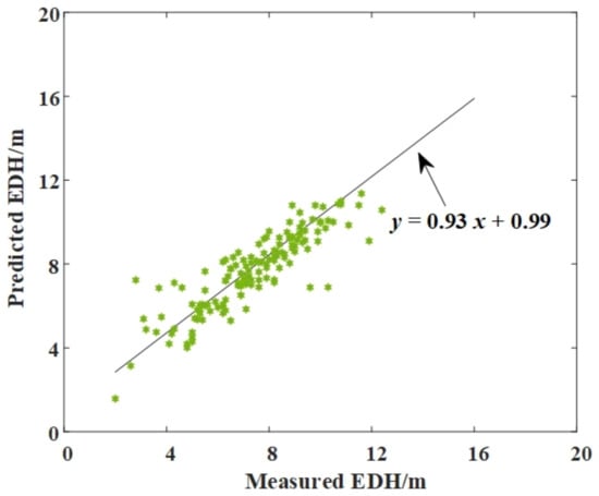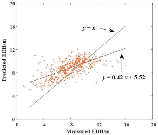 Scatter plot of measured EDH against modeled EDH using the multilayer-MLP-EDH model.