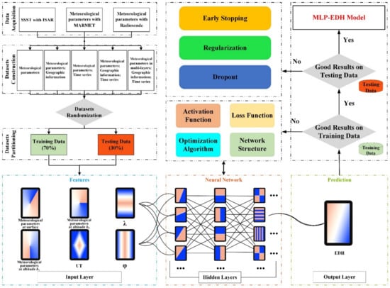 The essence of prediction is complex regression function construction and a multi-dimensional EDH prediction model can be constructed with the “extra data” in the experiment. The essence of MLP is also a nonlinear function mapping from input vector to output, similar to the model we tried to train. The advantages of MLP in learning and in processing nonlinear global data may solve the regression problem of meteorological characteristics. With a reasonable network structure and hyperparameters combined with enough training data, the performance of MLP can be excellent compared with the theoretical model.
