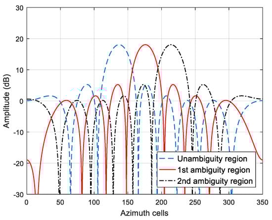 Thus, it can be observed that the data of different ambiguous regions are distinguished in the slow-time domain by (16), and the distinguished spacing between different ambiguous regions is . Meanwhile, the diagram of the separated data is described in Figure 4.