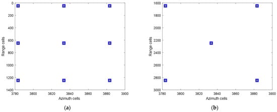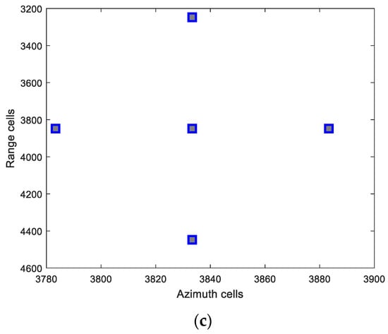 Positions of the point targets for different regions: (a) positions of the point targets in the unambiguous region; (b) positions of the point targets in the ambiguous region; (c) positions of the point targets in the ambiguous region.