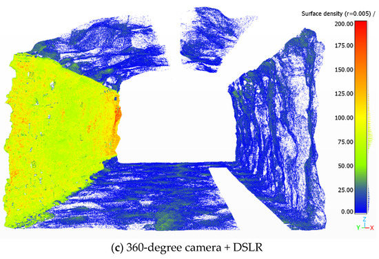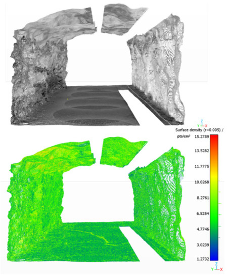 | Surface point density–mapping wall | 24.5 pts/cm2 | 24.2 pts/cm2 | 96.9 pts/cm2 |