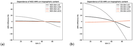 Percentage differences between AMFs computed using perturbed input profiles and standard profiles, for NO (a) and O (b). The AMFs simulated with standard profiles were the ones used to convert the SCDs into VCDs.