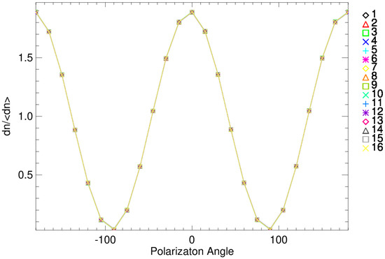 For each band, detector and scan angle measurement, a Fourier filtering using a 2-phi fit with the dns as the dependent variable and the polarization angle φ as the independent variable is used as shown in Equation (2).