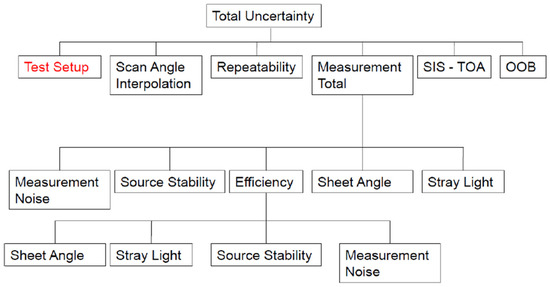 Estimated uncertainty tree for PST polarization sensitivity test that includes error terms from both the sensor and test source used during the characterization.